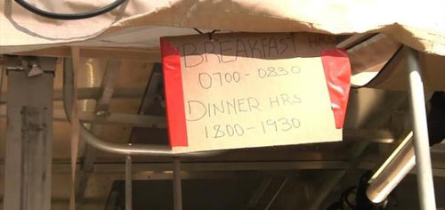 美军战地简易食堂,早餐为7点到8点半,晚餐为6点到7点半,估计午饭用前线简易军用口粮来解决。