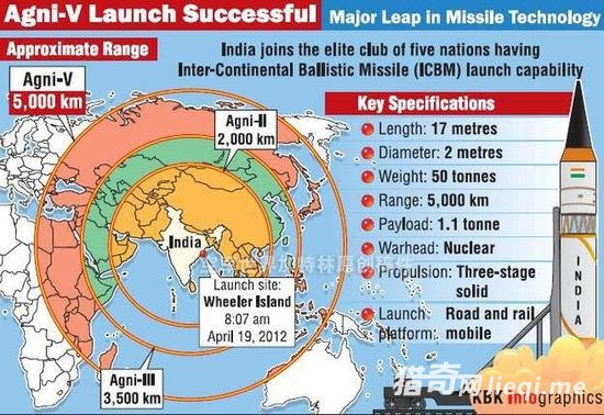 印度媒体绘制的烈火5弹道导弹覆盖范围