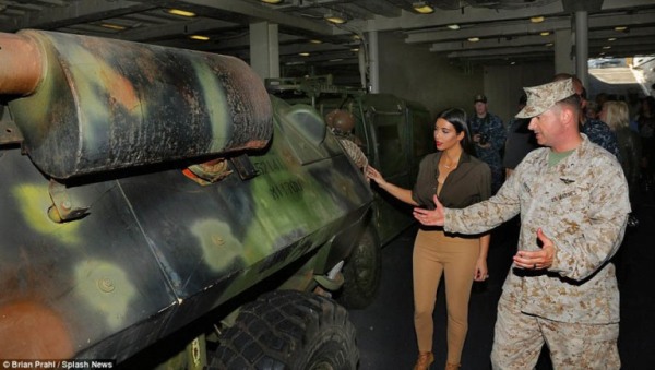 美国水兵引导卡戴珊参观舰载战车