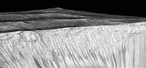 人类在火星上正式的发现有水源。去年的九月,我们在火星上发现沿火星山脉里有黑色水纹的确凿证据。