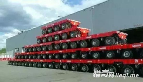 他就像个儿童积木,根据你自身的需求来组合,有4轴和6轴,一个轴标准载重是30吨+,4轴的120吨,6轴的180吨,可以并排组合。