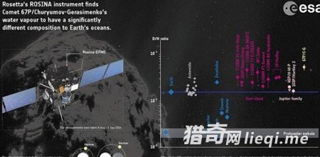 今年11月,罗塞塔号探测器着陆在67P彗星表面,勘测数据表明该彗星上的冰块不同于地球冰水。