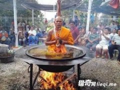 近日泰国被爆出,一群和尚到处宣言他们有水火不侵之体,要当众表演下油锅,顿时吸引了很多游客的观看。 分页标题 只见好多人围着一口大锅,而大锅里坐着一名僧侣,锅里的油都沸腾了,僧侣却打坐端坐,脸上没有一丝痛苦的表情。 分页标题 火越烧...