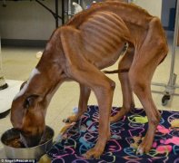 2015年9月12日报道,美国,一只叫Odysseus的流浪狗,大概2岁的时候,被救援人员在教堂外发现。它被救的时候由于实在太瘦,饿得只剩下骨头,救援人员无法分辨出它的品种。那时的它已经奄奄一息。分页标题 瘦骨嶙峋的Odysseus。分页标题 它被救的...