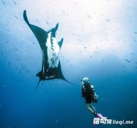 墨西哥罗卡帕蒂达岛,32岁的摄影师Mario Chow在海底拍摄到了一只约5米宽的巨型蝠鲼,在摄影师的镜头下,巨型蝠鲼在海中转身、翻跟头,像是在为水中的潜水员们表演舞蹈。其中一幅巨型蝠鲼直立的照片,对比显示出潜水员的渺...