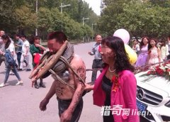据郑州大学微博协会微博曝光,在河南郑州一酒店附近,站在婚车里的新郎用麻粗绳拴着爸爸,本应穿戴一新的父亲却赤裸上身,被涂鸦乌龟、要孙子、要双胎的字样,母亲也是一番刻意打扮。新郎在后面坐着豪车,拴着父母,游过街头,引来网上一片骂声。分页标题...