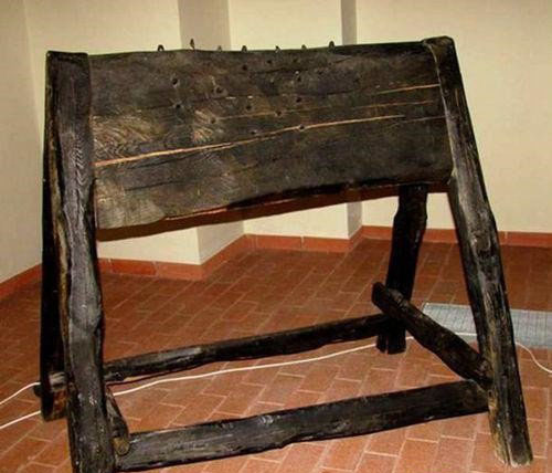 1.西班牙驴子。受刑者会赤身裸体,像骑驴子般放在刑具上,木椅上很多倒V铁刺。一旦坐上去被钩住了肉,下都下不来了。
