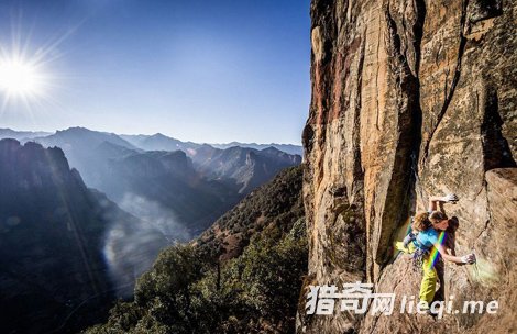 瑞士女教师徒手攀岩305米高裂缝峭壁