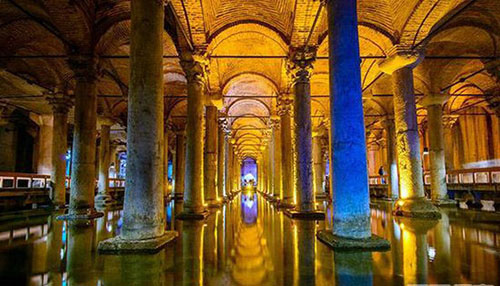首先,第一处是土耳其的地下宫殿。这处Basilica Cistern地下宫殿于公元532年创建,当时人们是为了贮备水资源而建,如今被称之为土耳其的一大奇观。整座宫殿占地近1000平方米,可以容难8万立方米的自然水,有336条大理石石柱支撑。
