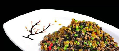 其实就是豆角、皮蛋和肉丁组成的小炒。关于这“苍蝇头”的来历,据说还有个有趣的小故事。豆角炒皮蛋本是台北餐厅很常见的一道小炒,但有一天老板听客人讲怎么菜里好像有很多苍蝇头,就被启发说干脆给菜起名叫“苍蝇头”好了。一个小误会成就了一道怪菜,而当时让客人混淆成苍蝇头的“罪魁祸首”,就是这道菜里的豆豉了。