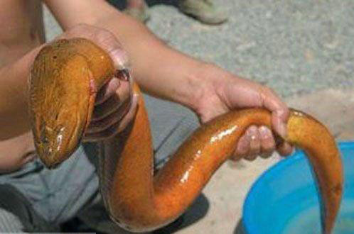 36斤重的巨型野生大黄鳝,你见过吗?湖州长兴36斤黄鳝引围观,网友惊呼这条36斤大黄鳝可谓是千年黄鳝精,通过该网友上传图片显示,这条大黄鳝腹部通体呈红色,体长估计在1.5米左右,身体的直径约碗口般粗细。