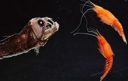 蝰鱼,这种鱼的头部让人看一眼就会做噩梦,很多长短不一的尖牙从它那恐怖大口里伸出来。蝰鱼之所以会具有这些特征,是因为它生活在深达1000米到2000米的海洋深处