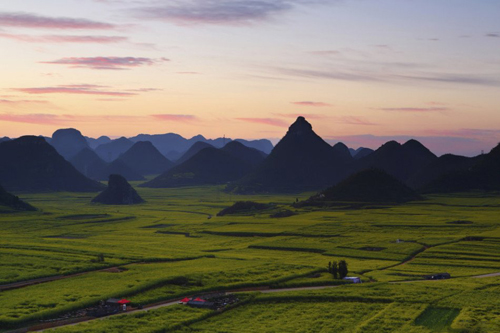 中国云南省曲靖市罗平县素以油菜花闻名于世,每年2、3月都可见20万亩油菜花在罗平坝上竞相争放。