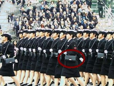 那么,为什么日本自卫队女兵总是要挎着这个黑色的小挎包呢?答案就是日本有一个习俗,女性在穿和服时,背部都要缠上一个看来既象小背包,又象中国南方妇女背小孩用的襁褓似的东西。其实,那既不是小背包,也不是襁褓,日本人把它叫做“带”。用带系身可以不让和服送展,显出形体的美,同时也是为了装饰,使艳丽的和服更加多彩。