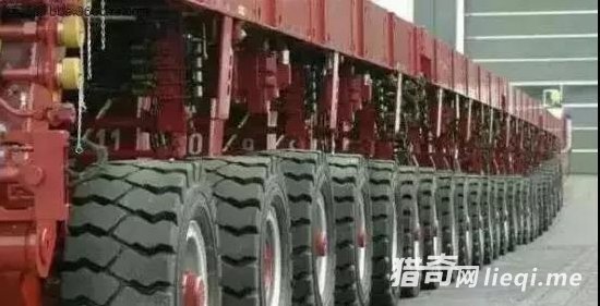 这个车名叫平板车SMPT,拥有1152个车轮,简直让人一眼看不到头,据说,每个轮子30吨以上,整车载重超过5万吨。