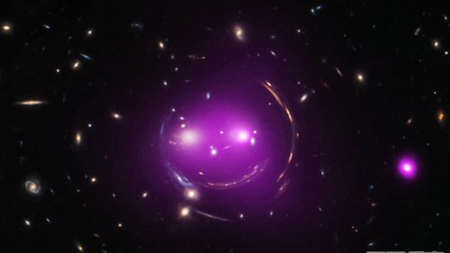 圆形脸实际上是由两组引力效应扭曲的46亿光年远的星系的光线。而两个“眼睛”实际上是两个相互以超过300000英里每小时(482803公里/小时)靠近的巨大的星系。科学家预计它们将在十亿年间发生碰撞。