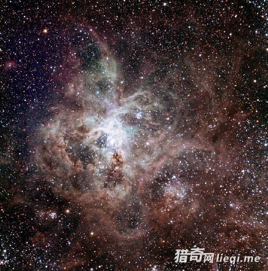上图是我们银河系的邻居大麦哲伦星系中的一个星云,叫做狼蛛星云。这个星云是一个恒星孵化器,孕育着成千上万的恒星。
