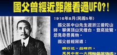 孙中山近距离看过UFO? 有谁会想象到这个名字会和UFO有着联系,但真的有一段历史文献记录了这个让人匪夷所思的事件,据记载,1916年8月25日,孙中山先生与胡汉民等乘建康号军舰,前往舟山群岛视察。 8月25日下午,顺道登上普陀山游览。孙中山一行上岸,正巧...