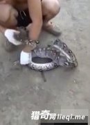 小伙在河边抓到瘫痪巨蟒 剖开后惊呆