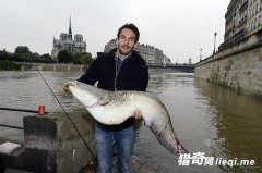 法国巴黎发大水 男子却钓大鱼