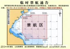 海军部队将在青岛至连云港以东海域组织大型军事活动。 为确保安全,请各船舶特别注意:2017年7月27日0800至7月29日1800,不得进入下图所示临时禁航区,含91-95、101-105、111-115号、120-123号渔区,并听从外围警戒舰艇指挥,以策安全。 中国人民解放军91208...