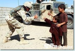 给糖送书拍照掰手腕,看看美军进入伊拉克后如何对当地孩子们示好