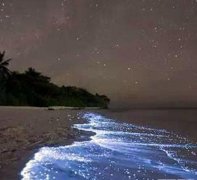 10【马尔代夫星星海】 远处看马尔代夫Vaadhoo岛上的星星海,这似乎是天上的星星的镜像。水中的生物荧光实际上是被称为浮游植物的海洋微生物。 夜晚时分在岸边的效果绝对是惊人的,像极了童话中的场景。这神奇的效果,也可以在波多黎各的别克斯岛上体验到。 #...