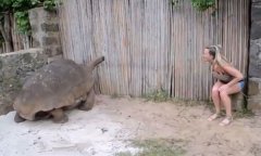 动物园里有一只巨型乌龟,供人们观赏,一位大胆的女子跑了进去想进距离的观看乌龟的慢动作 分页标题 一开始现在远处打招呼,看见乌龟没有恶意,就慢慢的靠近,给他喂食物 分页标题 乌龟也很听话,乖乖的吃了起来,可能感觉人类没有恶意,头开始...