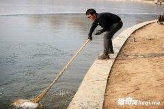 猛男!男子铁锹砸冰水下游泳