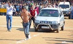 肩胛骨拖车。汽车重量达1吨多。 分页标题 女生手劈火木头。燃着的木头,温度相当高,小女生怎么做到的。 分页标题 骑马竞技。单人独骑三匹马,还有谁! 分页标题 钻火圈 分页标题 嘴刁自行车,难度有点大,但对阿三来说小菜一碟。 #...