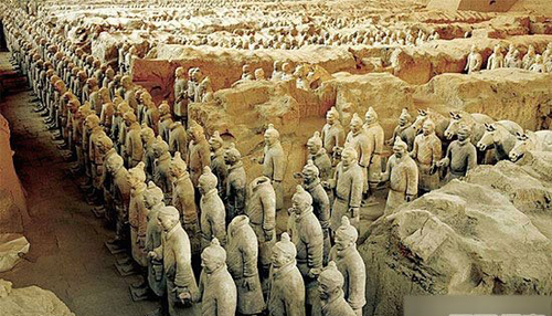 关于秦陵陪葬品的数量,司马迁称,“奇器珍怪徙藏满之”,从秦陵的占地面积来看,其珍宝的价值和数量无法估量。《汉书》等史书也记载,“冶铜锢其内,漆涂其外”、“披以珠玉,饰以翡翠”、“棺椁之丽,不可胜原”一副棺椁,就这么值钱,那加上其他的文物,其价值不言而喻。陵园仿照秦国都城咸阳的布局建造,大体呈回字形,陵墓周围筑有内外两重城垣。据史载,秦始皇陵陵区分陵园区和从葬区两部分。陵园占地近8平方公里, 建外、内城两重,封土呈四方锥形。秦始皇陵的封土形成了三级阶梯,状呈覆斗,底部近似方型,为了防止河流冲刷陵墓,秦始皇还下令将南北向的水流改成东西向。