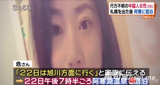 日本媒体报道,危秋洁22日晚曾入住阿寒湖温泉附近据警方调查显示,危秋洁22日晚7点半左右,曾独自一人入住阿寒湖温泉的宾馆,并住宿一晚。而监控录像显示,危秋洁的状态并无异常。7月23日早上7点半左右,她办理退房,用信用卡支付了一人的住宿费,之后离开宾馆。