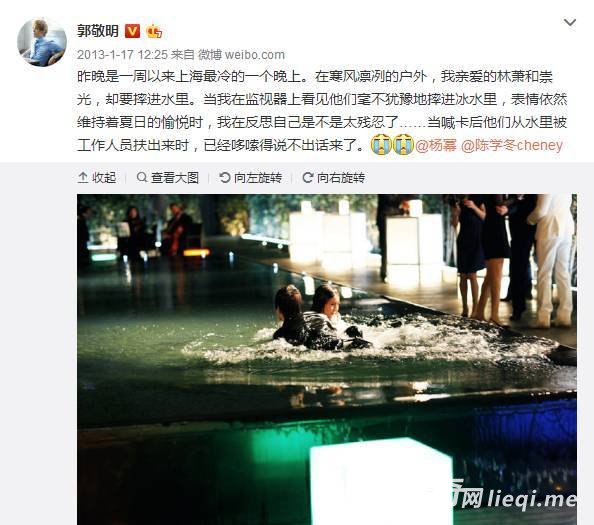 恰巧《小时代》就有一场跳水戏,并且小四还发了心疼杨幂和陈学冬的微博。