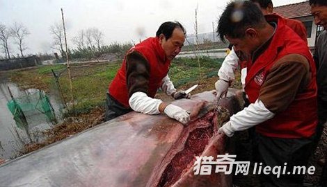 一头长约10米、重约10吨的食人鱼被发现搁浅在上海崇明县横沙岛东滩大堤的浅滩上。
