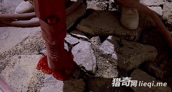 突然,电钻好像钻到了什么东西,一滩血涌了上来