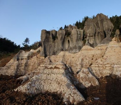 “豹皮纹灰岩”,也称“龟裂纹灰岩”(形状像龟背上的裂纹),因石灰岩上布满了繁多复杂的环纹构造,这些构造恍若豹子身上的花纹,故称“豹皮纹灰岩”。这些长期埋藏在地下的“豹皮纹灰岩”出露地表后,白色的灰岩上的环纹构造非常清晰明显。