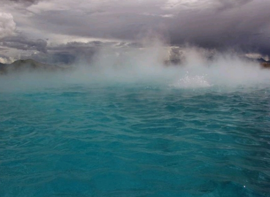 热水湖位于南极冰原的“绿洲”(指南极无长年覆盖冰雪的2%土地),这湖湖面上有一层清澈明亮的淡水,淡水下面温度高达27℃,比表面冰块的平均温度高47℃。科学家们发现在湖底既没有活火山,也没有热泉,况且湖底沉淀物的温度比湖底水层的温度要低,因此可以断定,热源不是来源于地下。